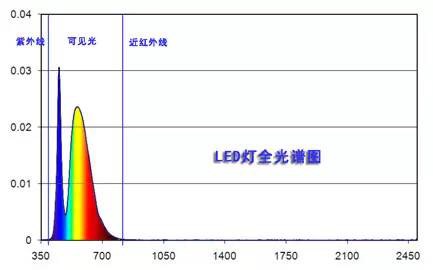 全光譜圖如下圖所示,LED 燈廣泛應(yīng)用在各種照明環(huán)境,應(yīng)用量在逐步增加。