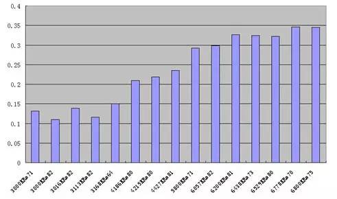 圖:LED 照明光源藍(lán)光輻射量比值(LED 為不同廠家封裝的產(chǎn)品)。