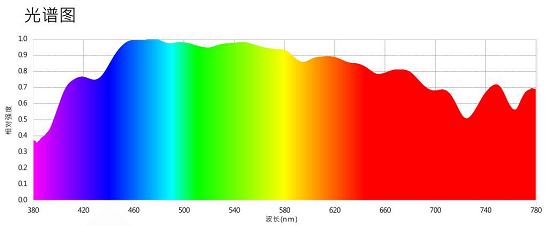 1.普通LED其在波段的連續(xù)性上較差,在藍光和綠光之間接近480nm波段的光譜存在“波谷”,而使得藍光成分過高,遠高于太陽光譜,而短波長藍光的過高,恰恰就是致使人體健康失衡的一個原因所在,因此,連續(xù)的波長使得短波藍光成分的減少,會使得人體更加健康。